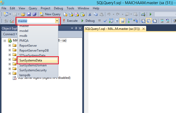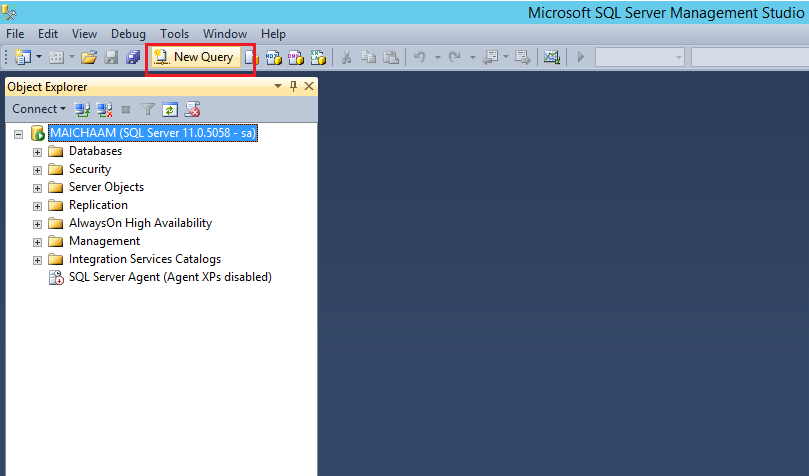2. At server, log on “SQL Server Management Studio” and then click “New Query”.